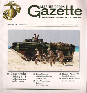 The following was published in the July 2006 issue of the Marine Corps Gazette. It was written in response to two excellent articles appearing in the April issue. The section bracketed and in italics was not printed.